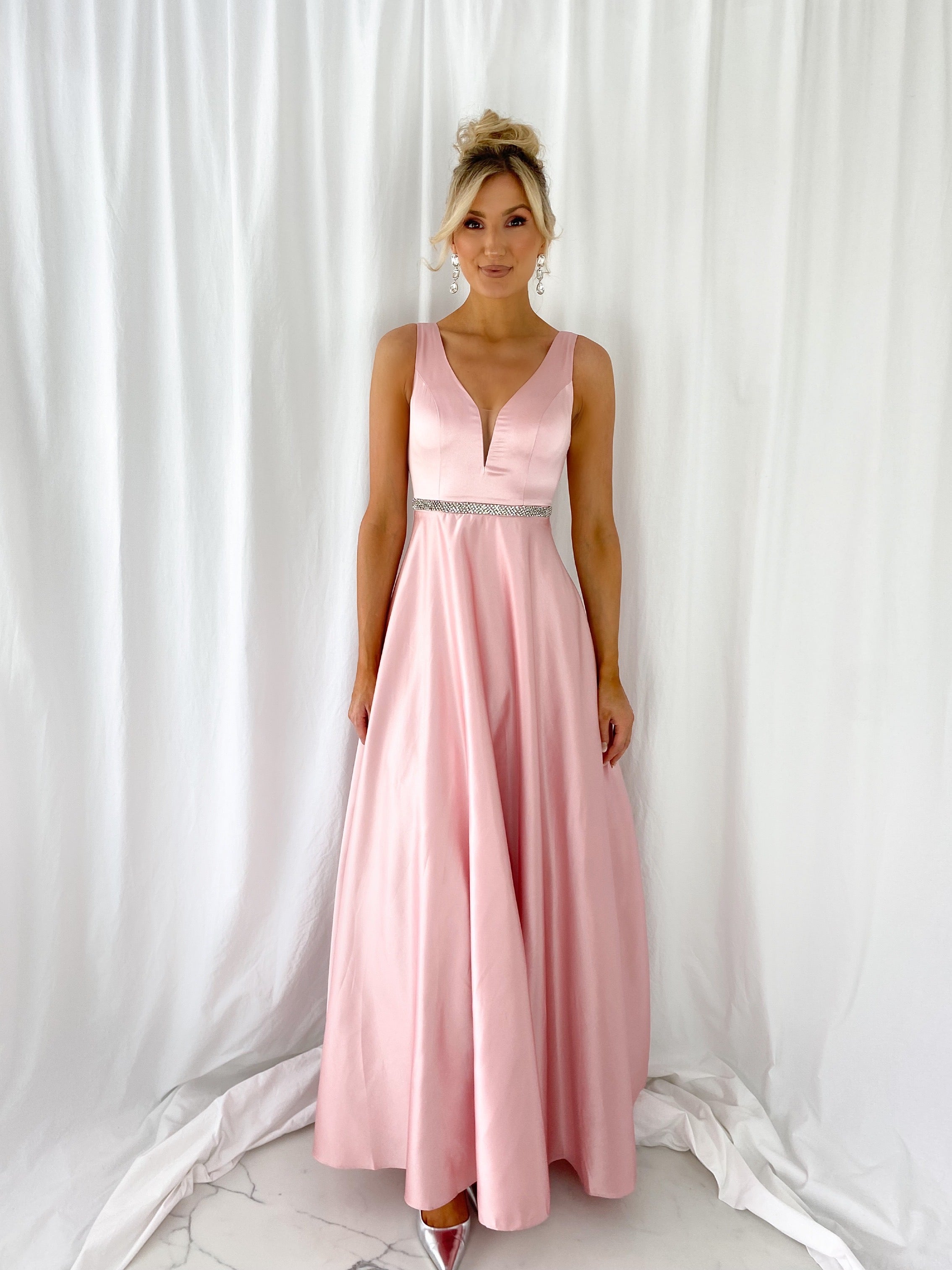 Brigitta Maxi Dress – Rose – Silver Front Detail – Princess Style – Small fit Model 6ft – Size Small – UK8