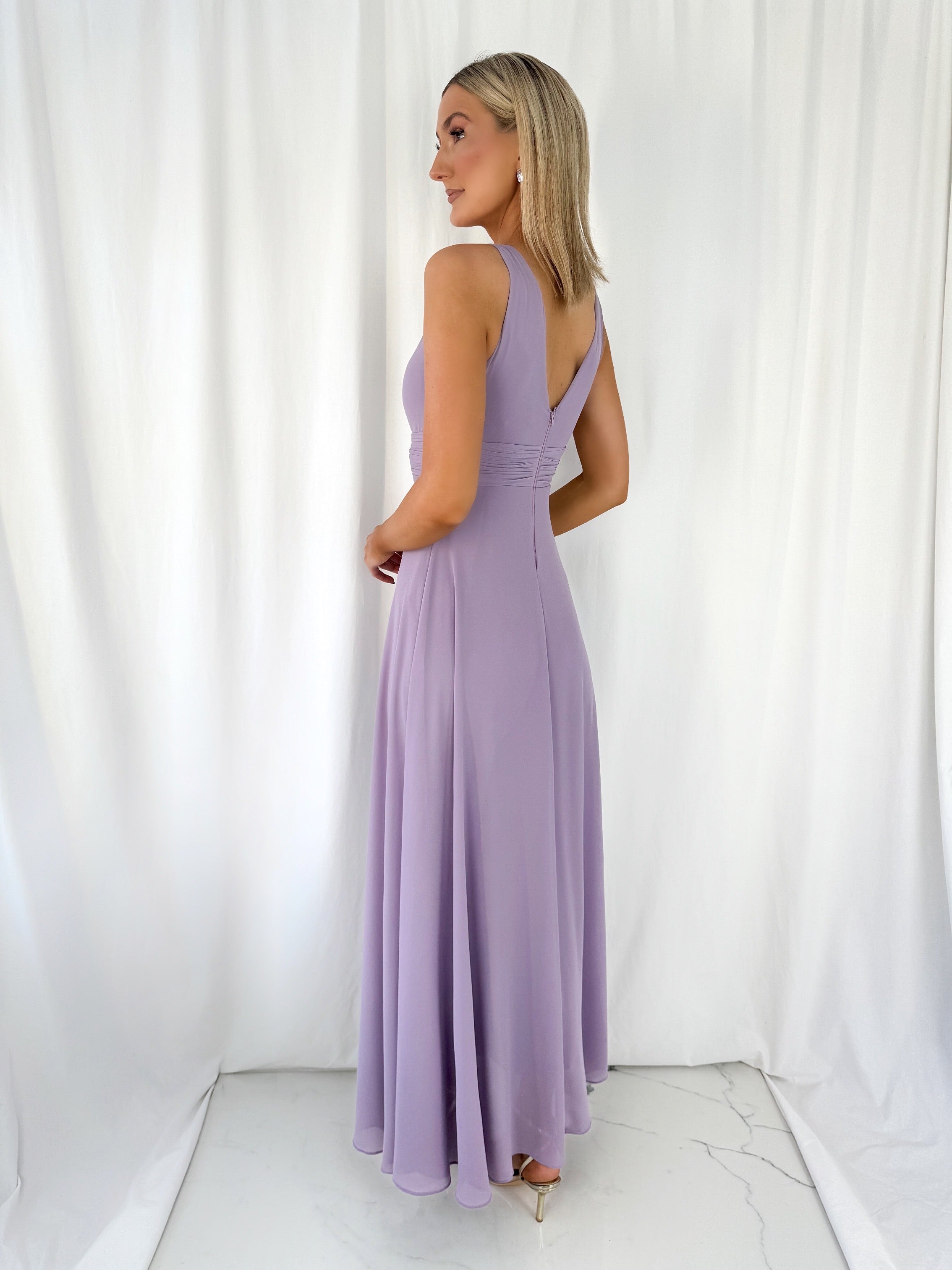 Tracy One Shoulder Draped Top Maxi Dress – Rose