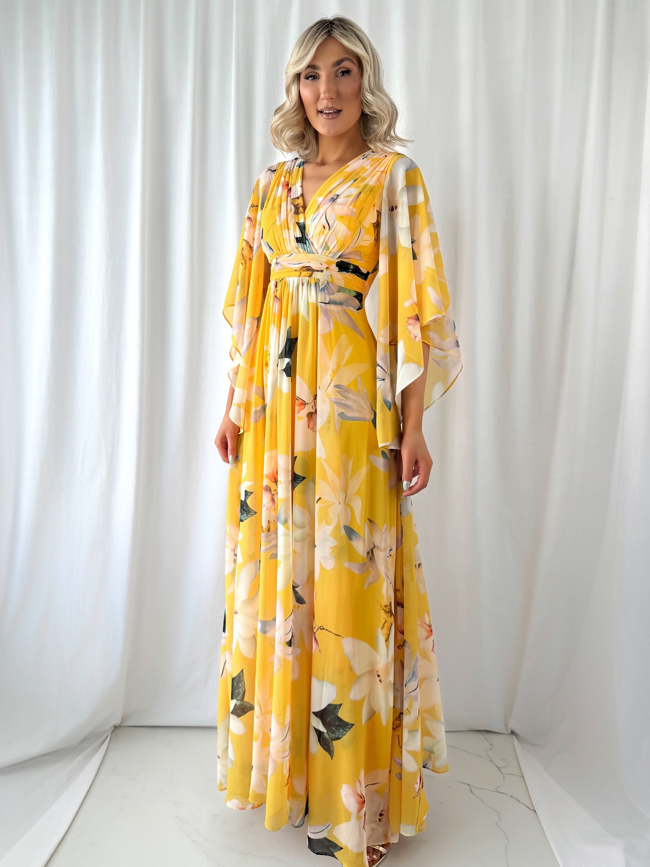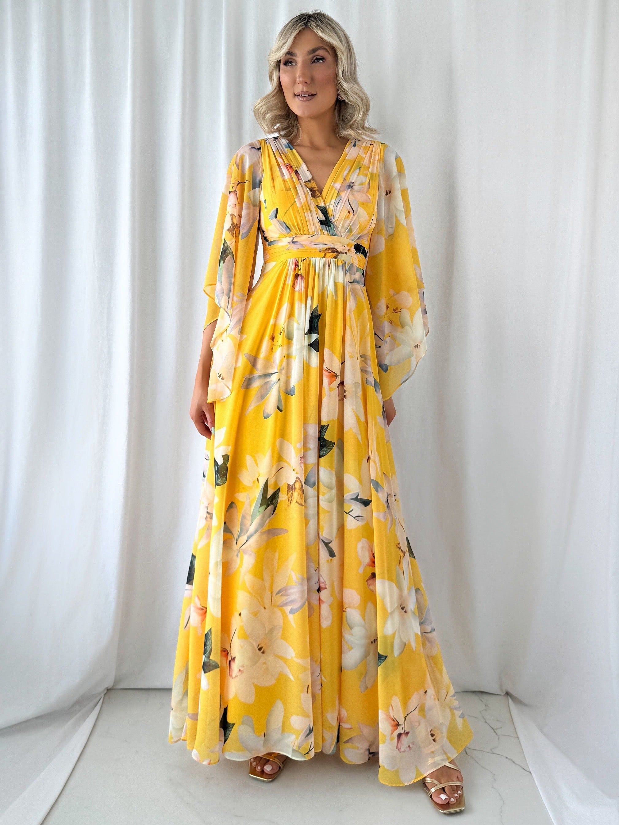 Natalia Maxi Floral Dress with Bell Sleeves – Yellow