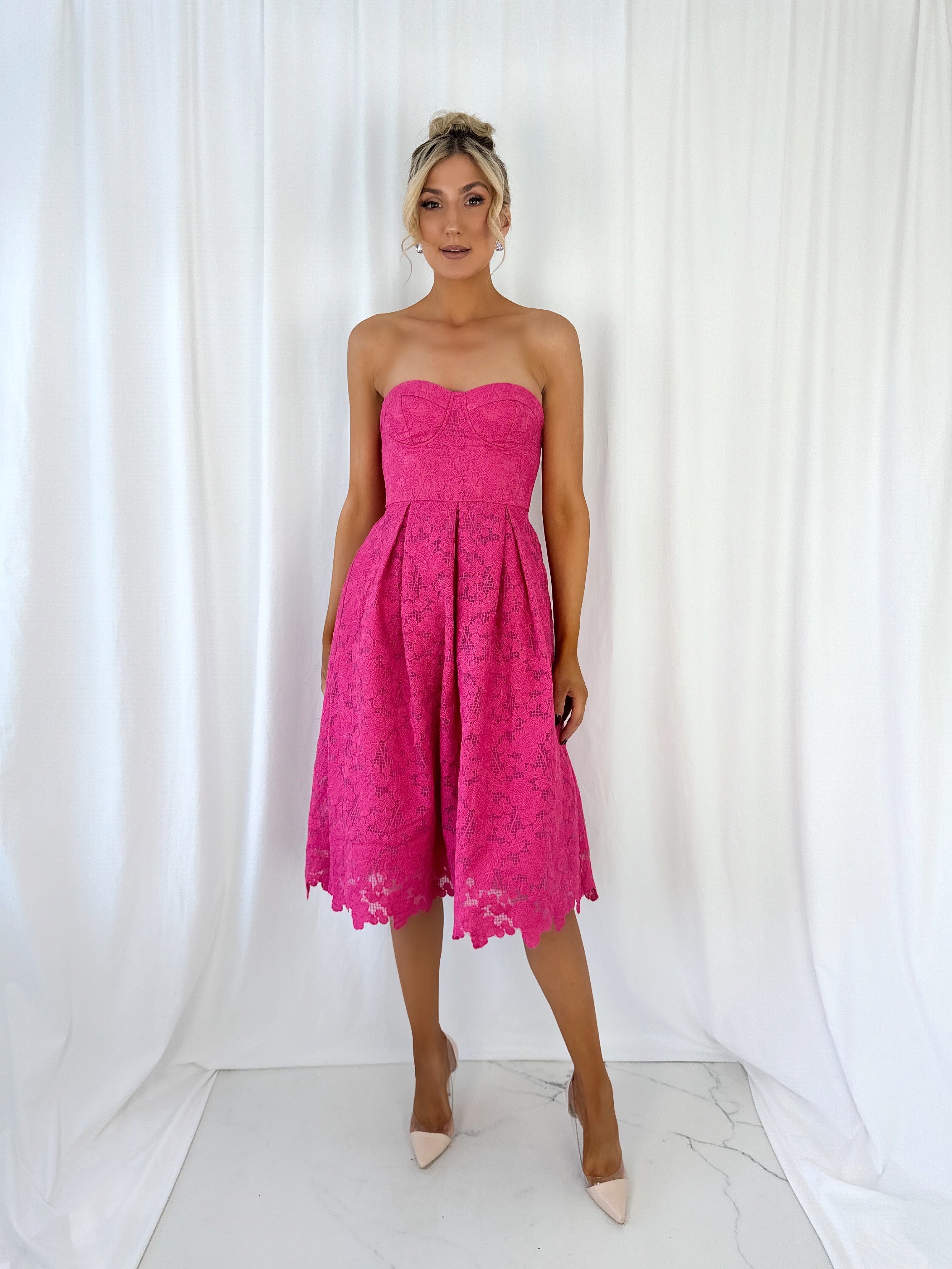 Salma Embroidered Off The Shoulder Midi Dress – Fuchsia
