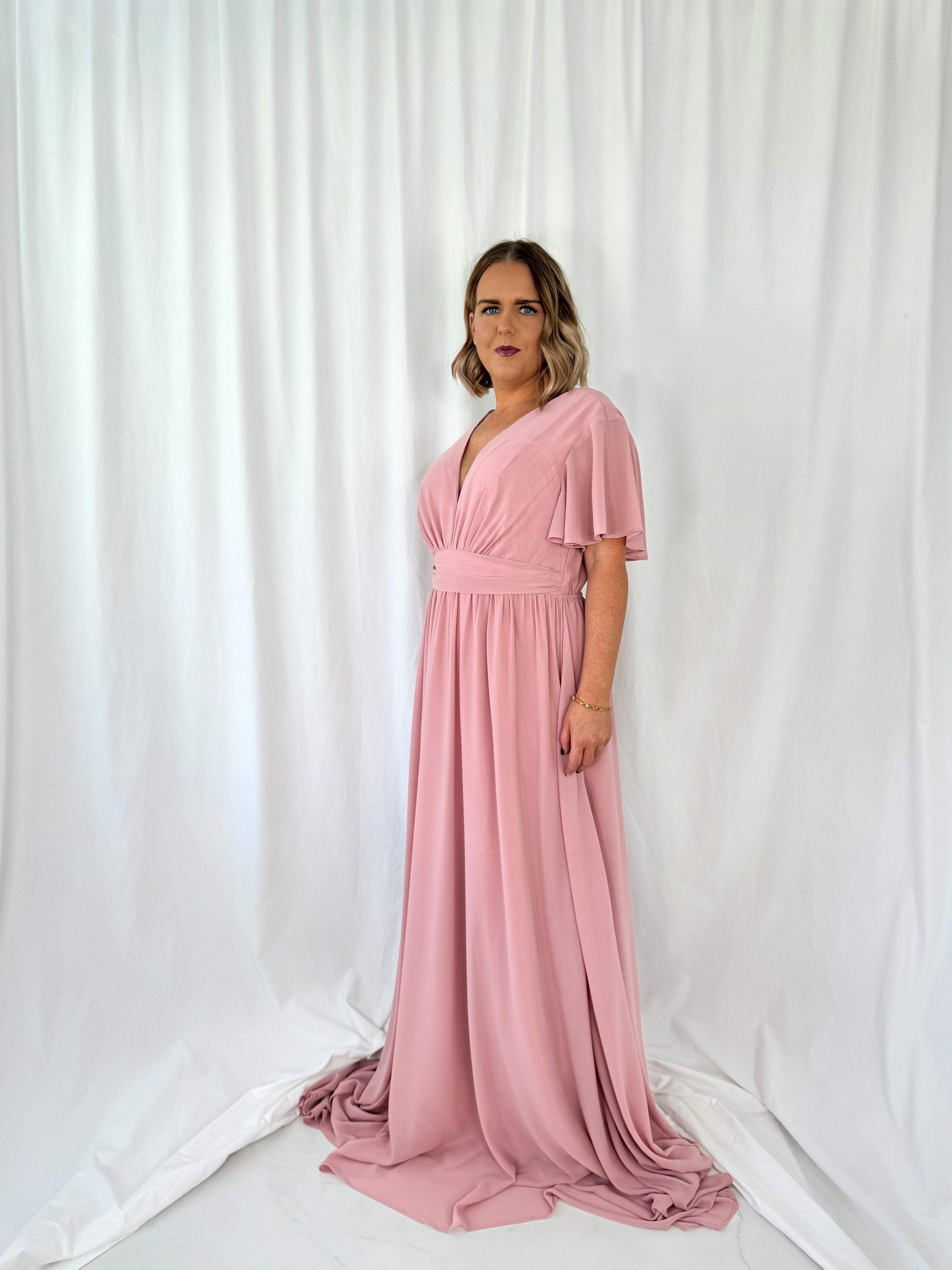 Tacha Rose Maxi Dress – Curve Short sleeves Elastic Waist Model Height is 5ft 2 Model wears size 42 42 – UK14 44 – UK16 46 – UK18 48 – UK20 50 – UK22