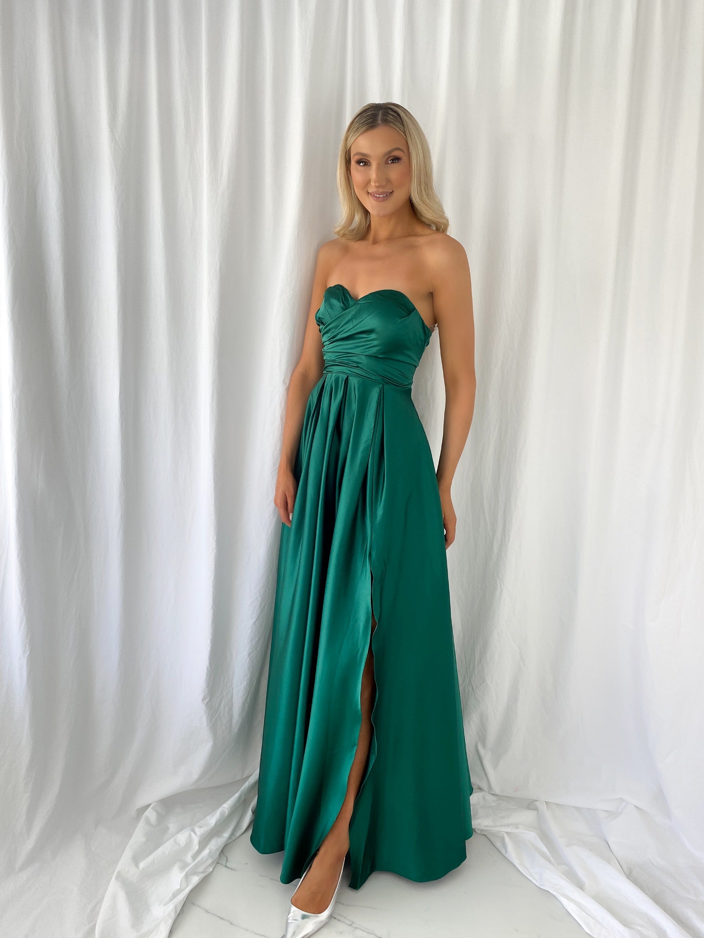 Teresa Off The Shoulder Maxi Dress – Dark Green – Strappy Back – Princess Skirt – Comes with Shoulder Strappy – Small fit Model 6ft – Size Small – UK8