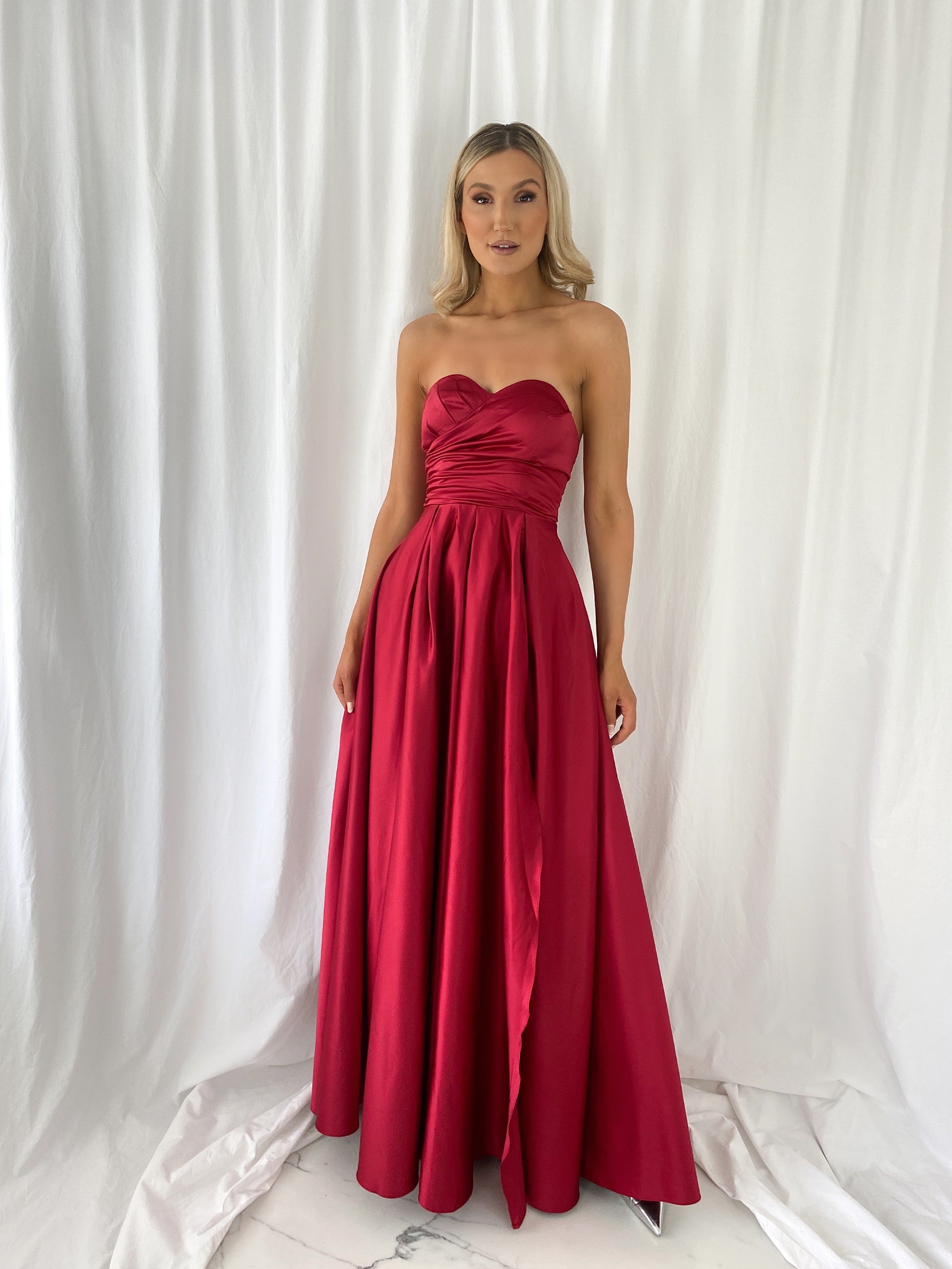 Teresa Off The Shoulder Maxi Dress – Red – Strappy Back – Princess Skirt – Side Slit – Comes with Shoulder Strappy – Small fit Model 6ft – Size Small – UK8