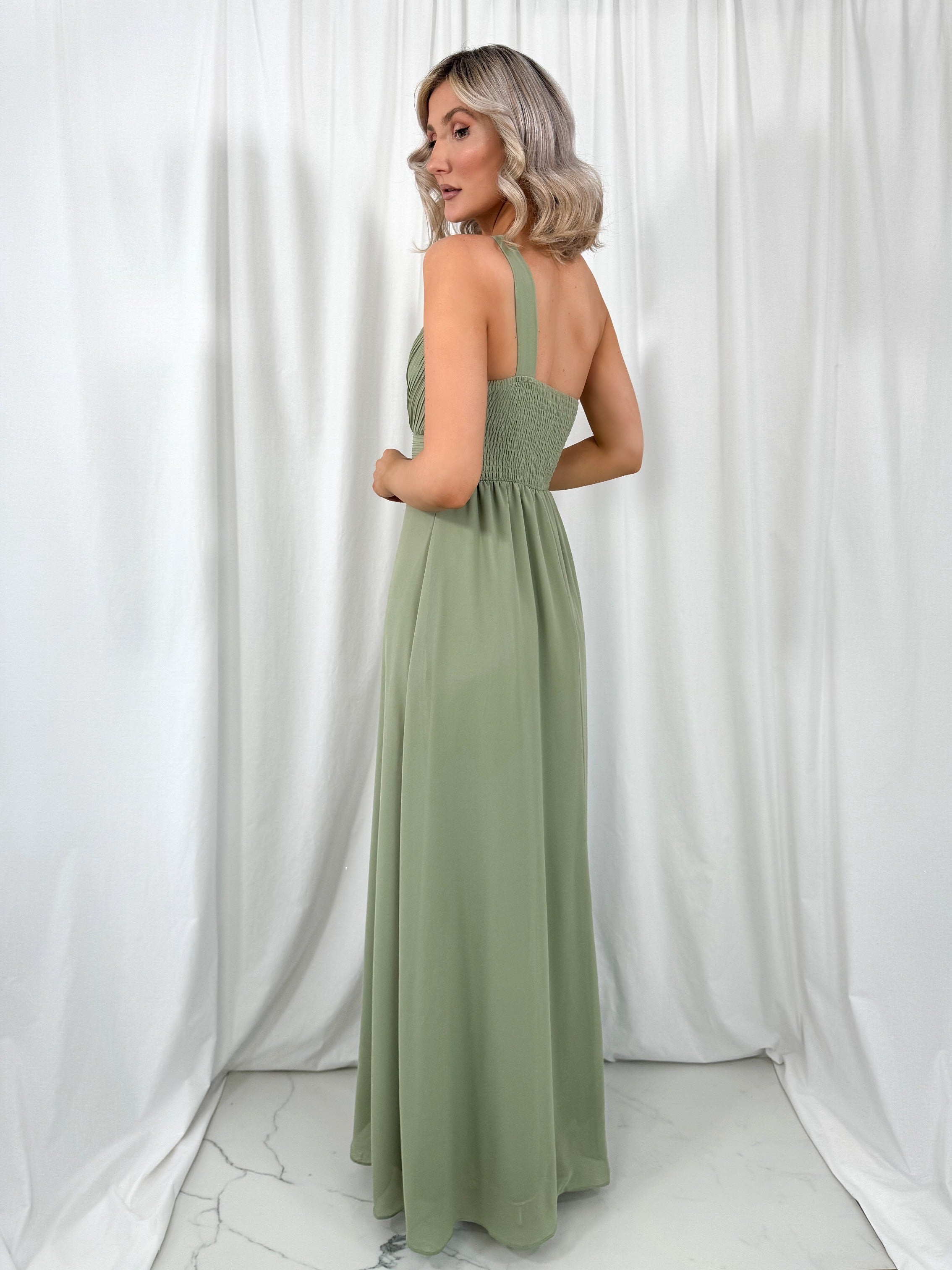 Tracy One Shoulder Draped Top Maxi Dress – Sage Green