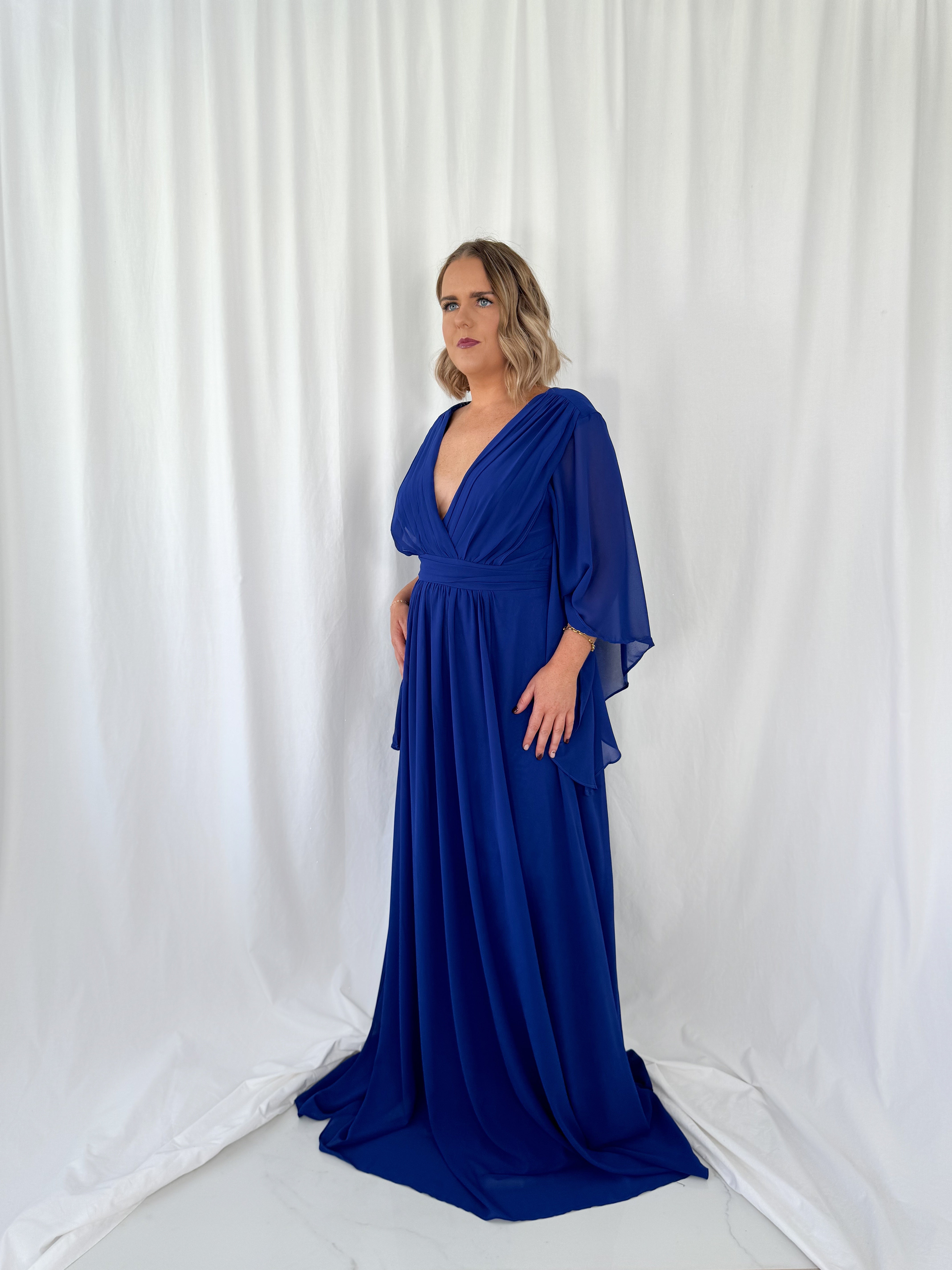 Marthe Bell Sleeves Curve Dress – Blue