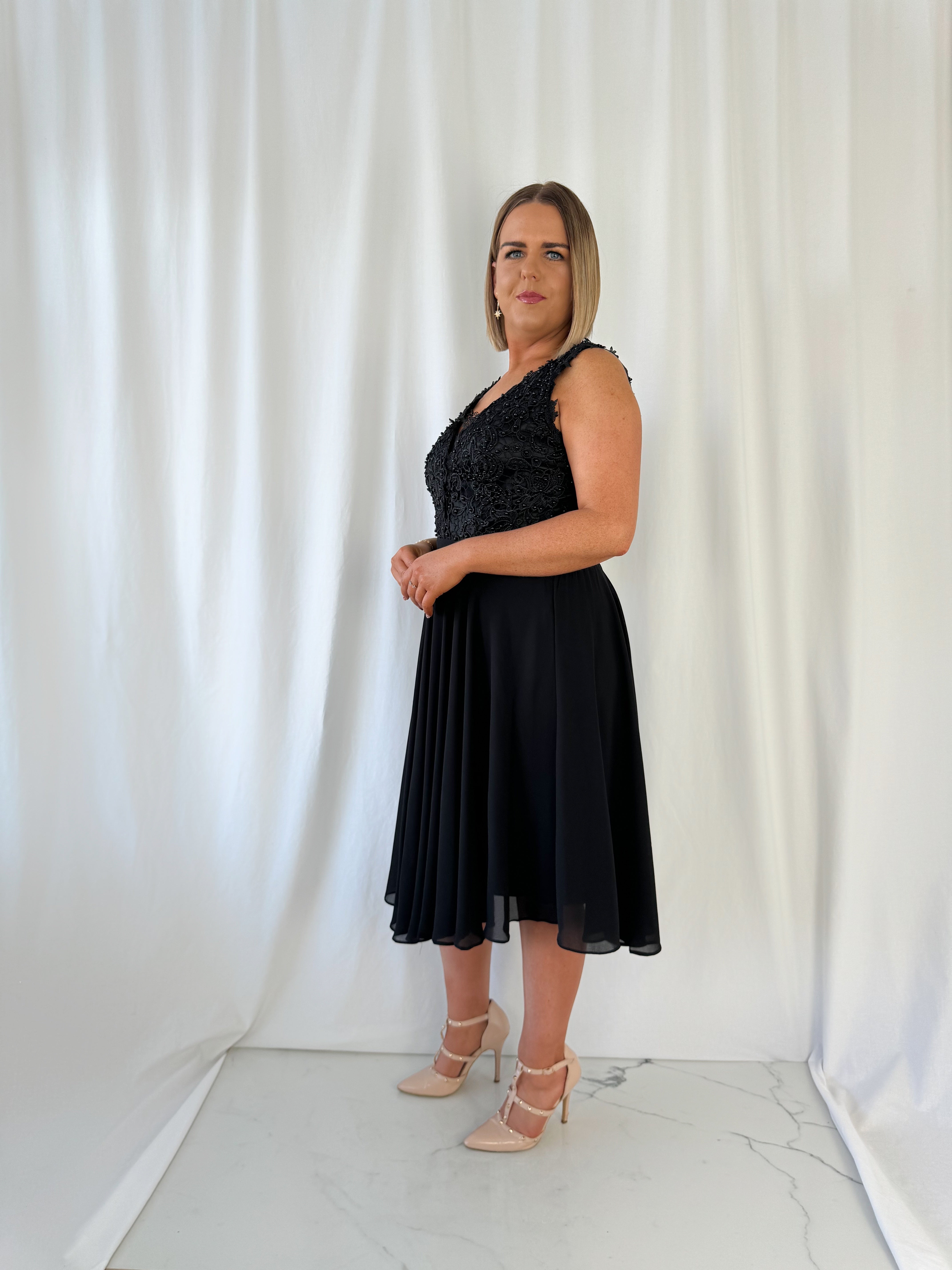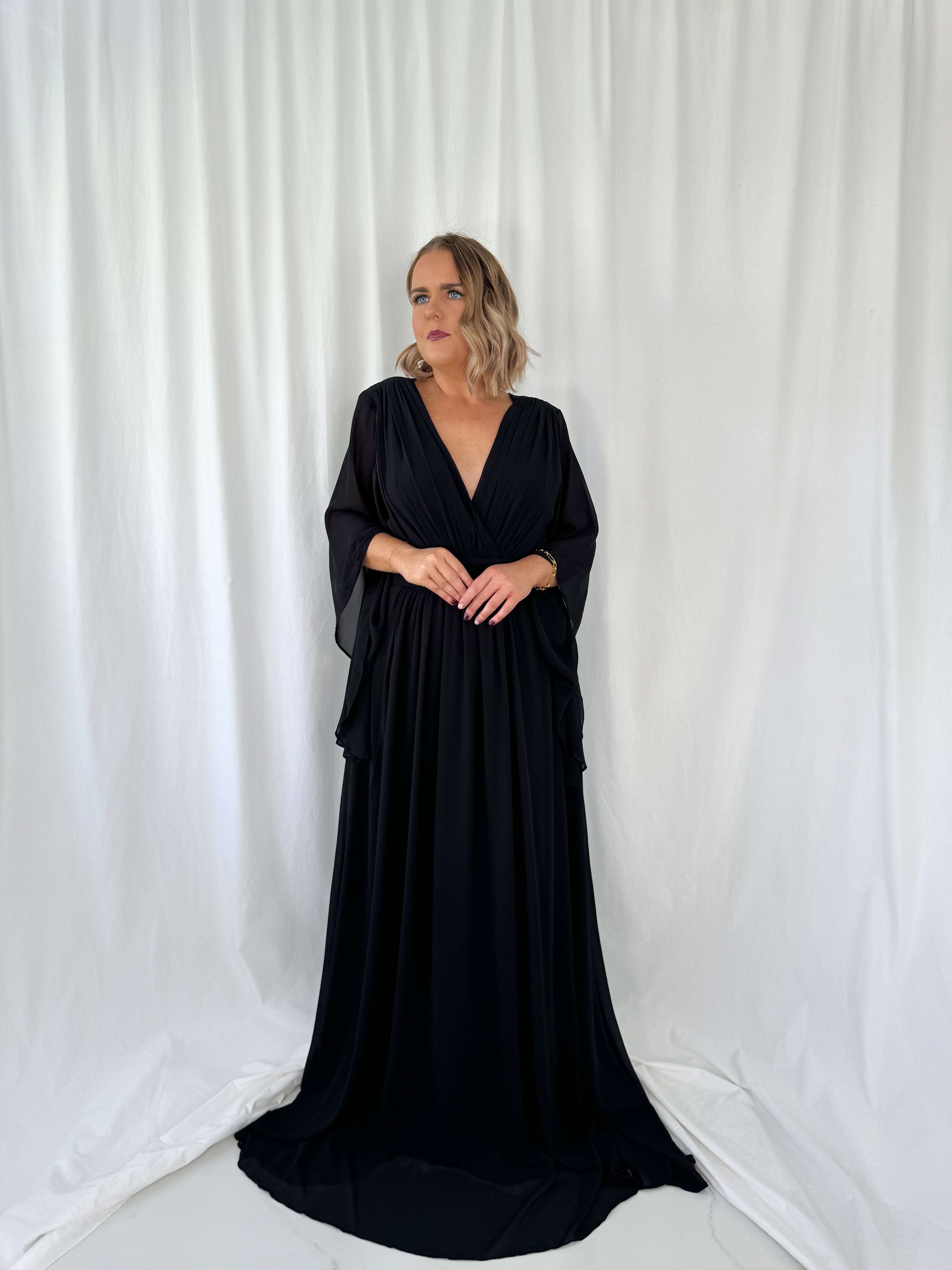 Marthe Bell Sleeves Curve Dress – Black