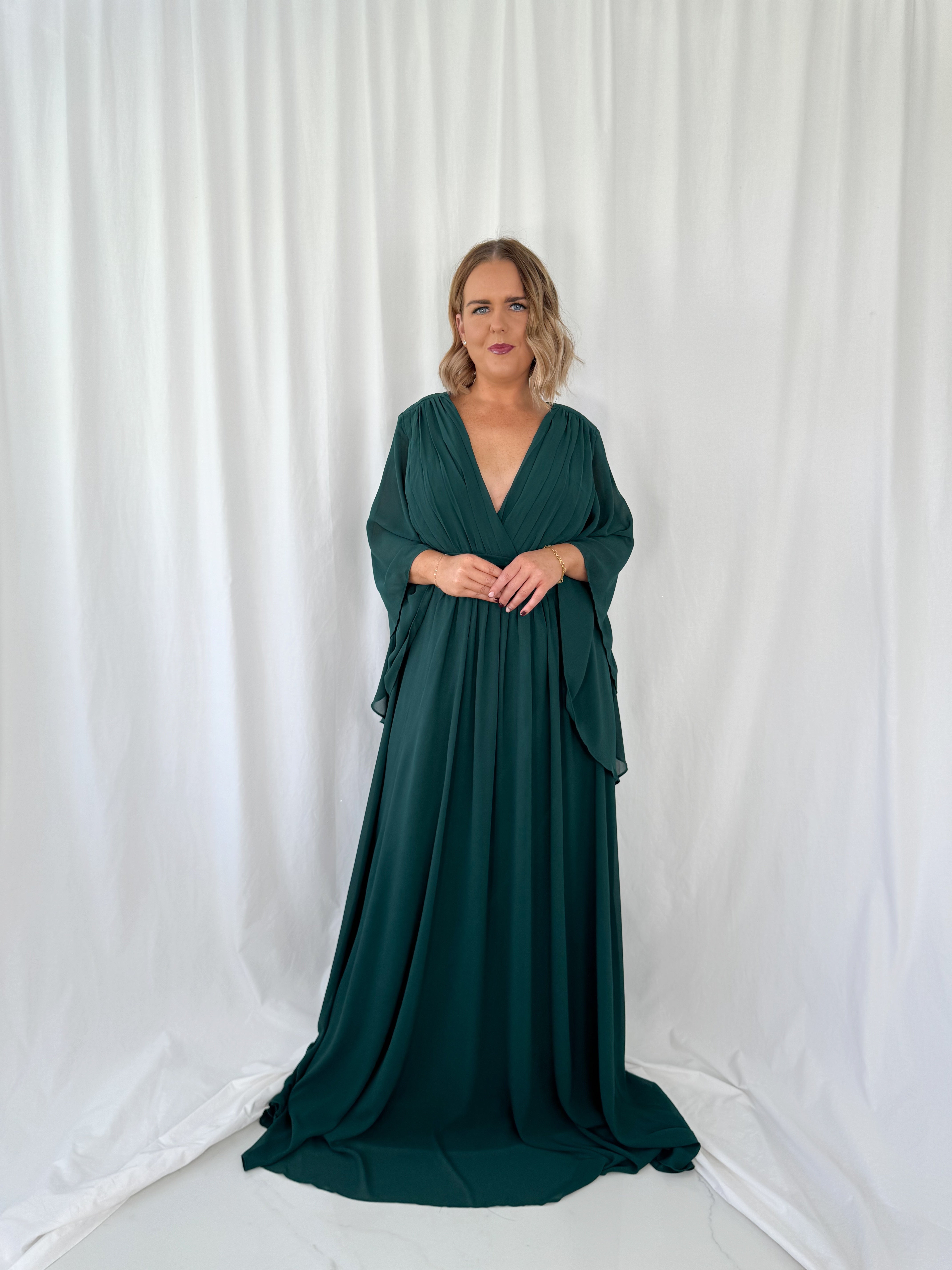 Marthe Bell Sleeves Curve Dress – Green