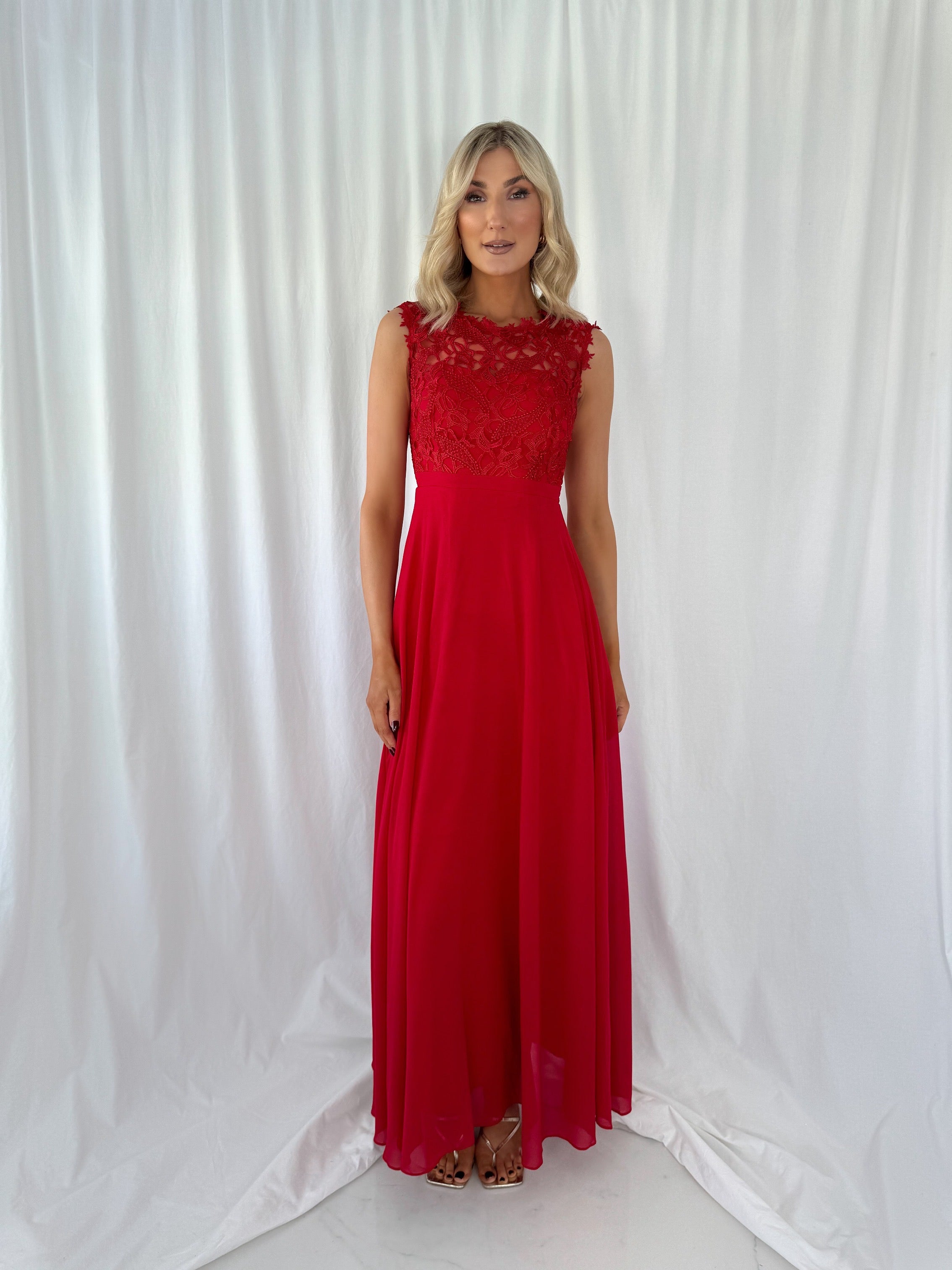 Savina Maxi Dress with Embroidered Top – Red