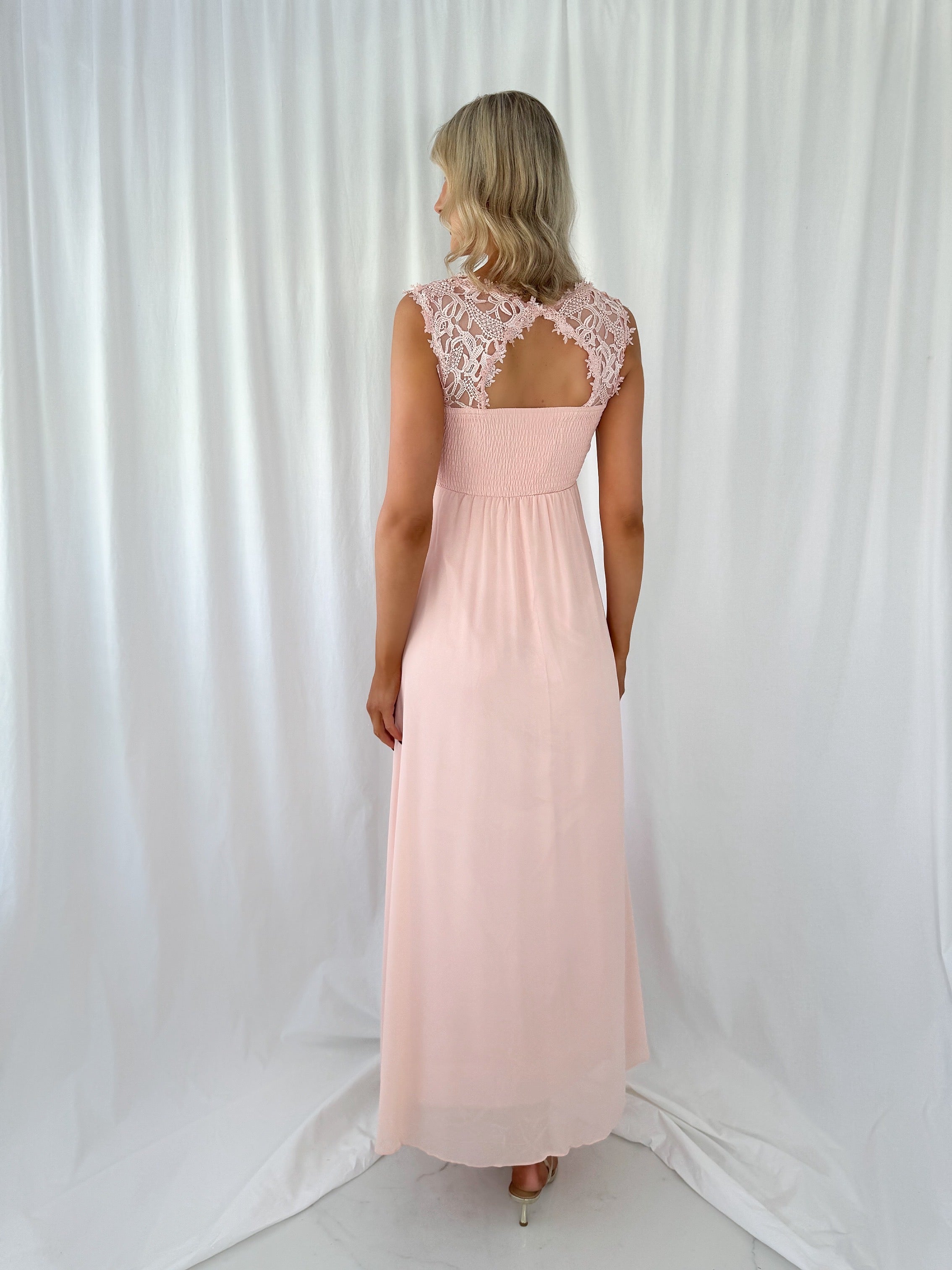 Savina Maxi Dress with Embroidered Top – Light Pink