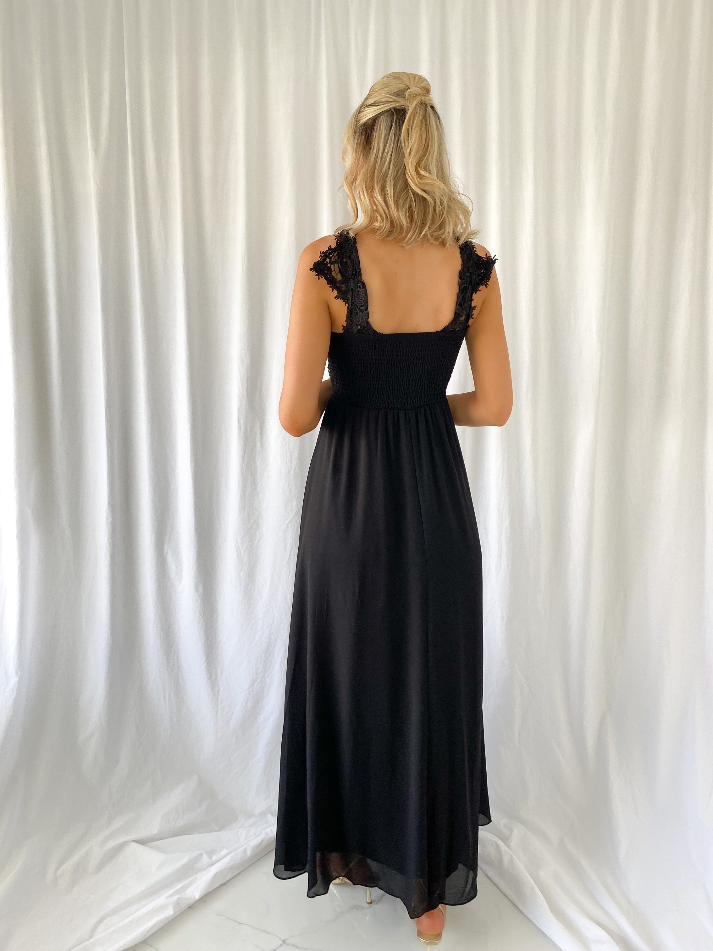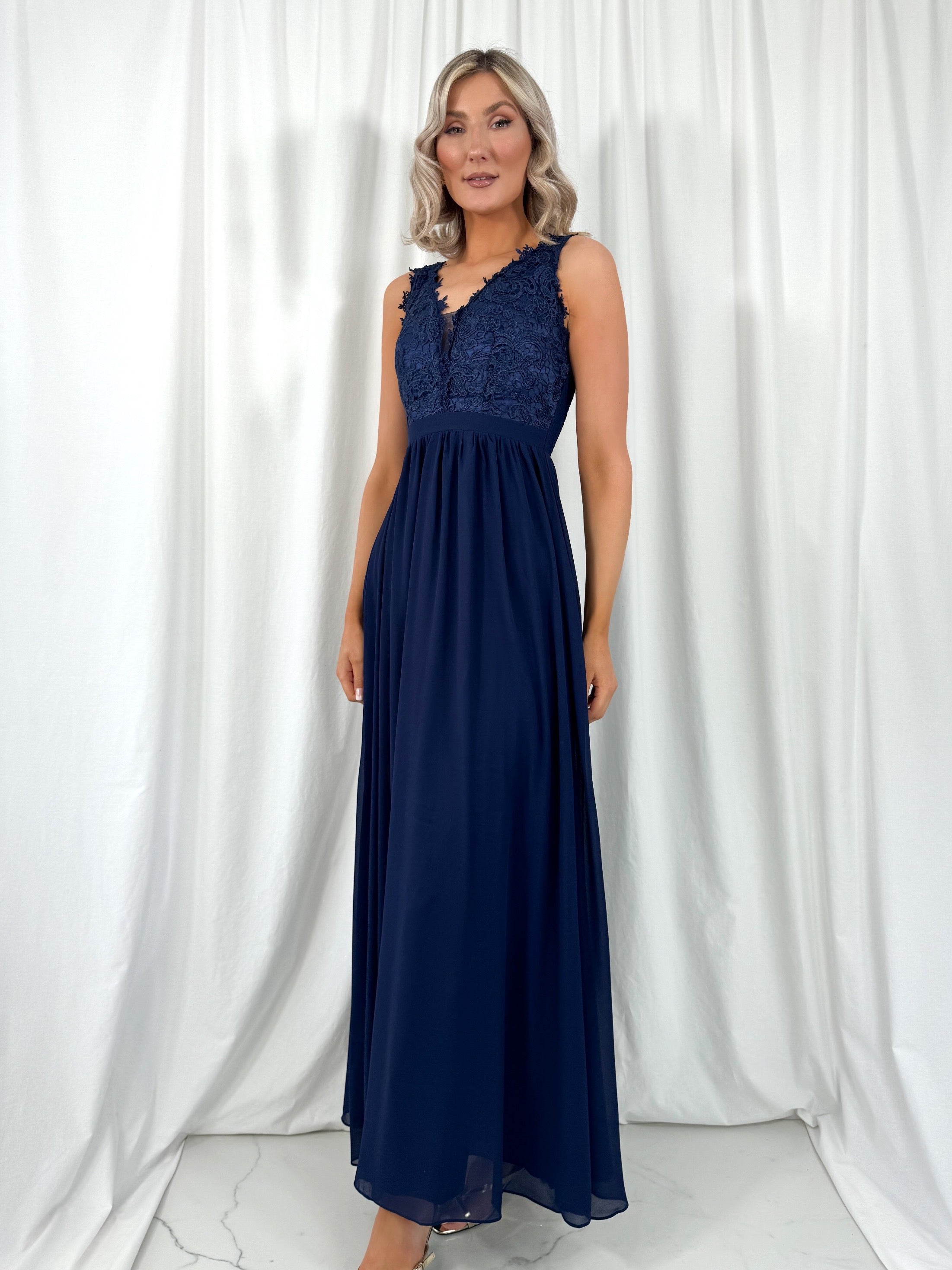 Telma Broderie Top Pleated Maxi Dress – Navy