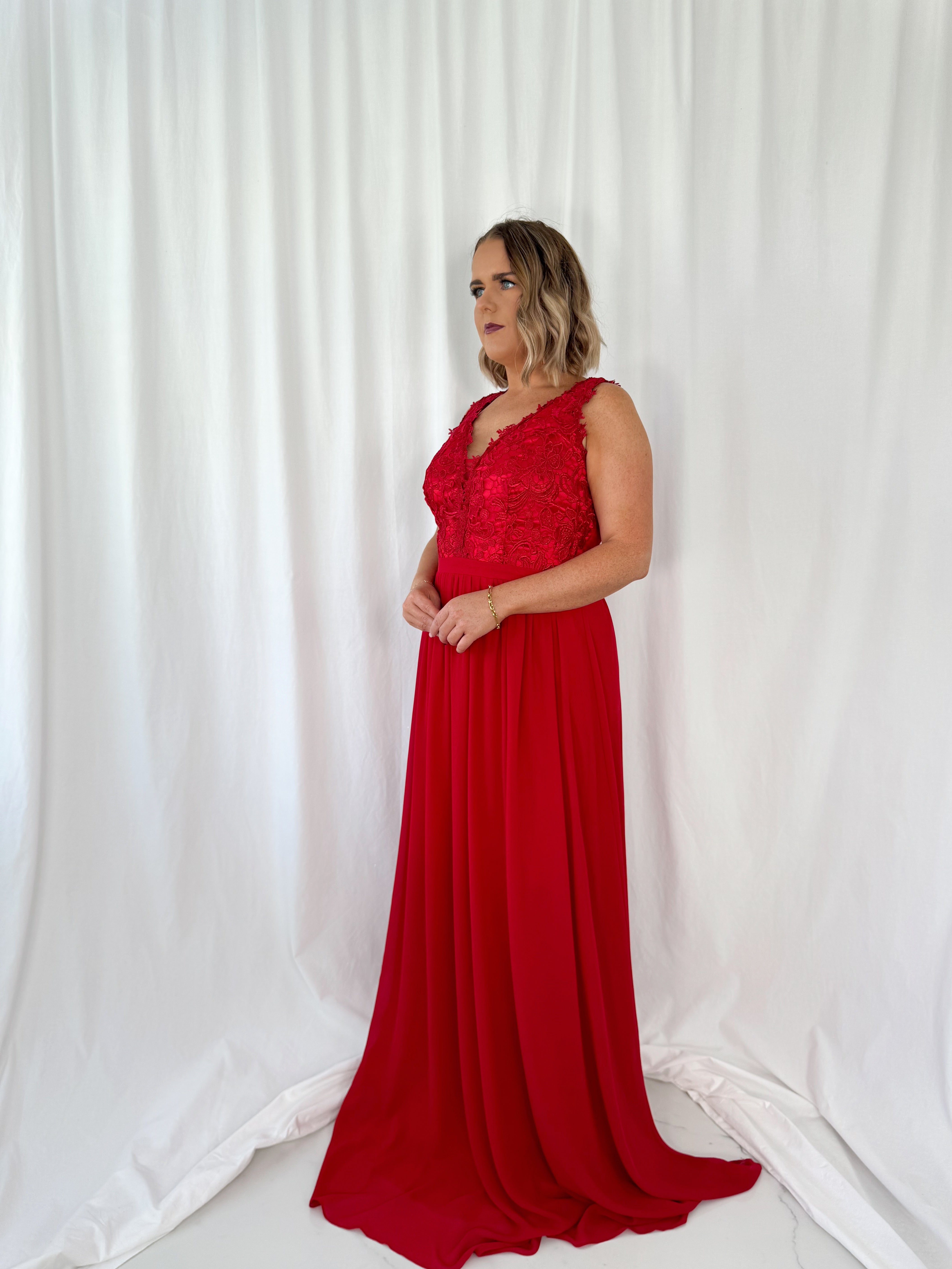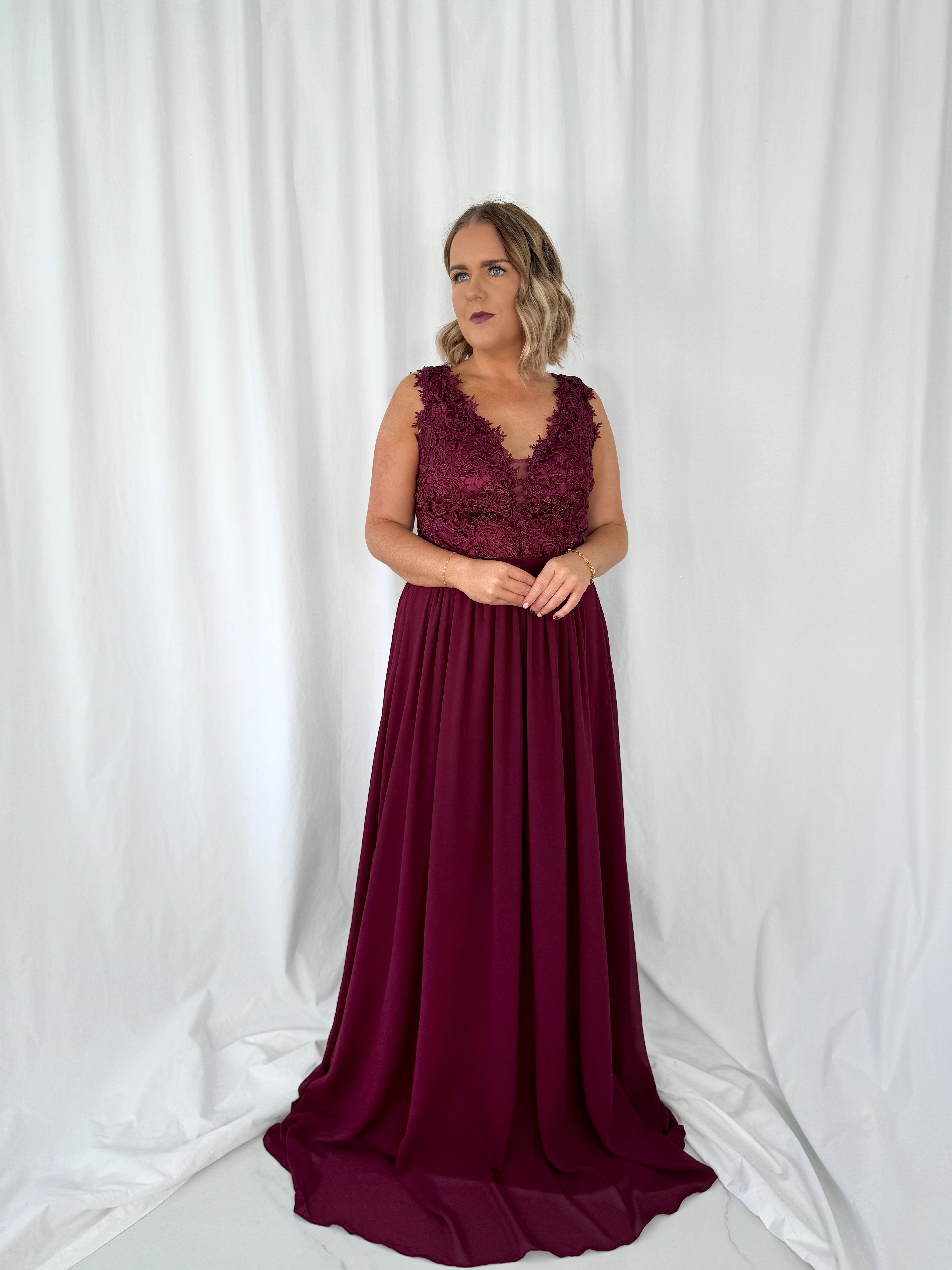 Telma Broderie Top Pleated Maxi Dress – Wine
