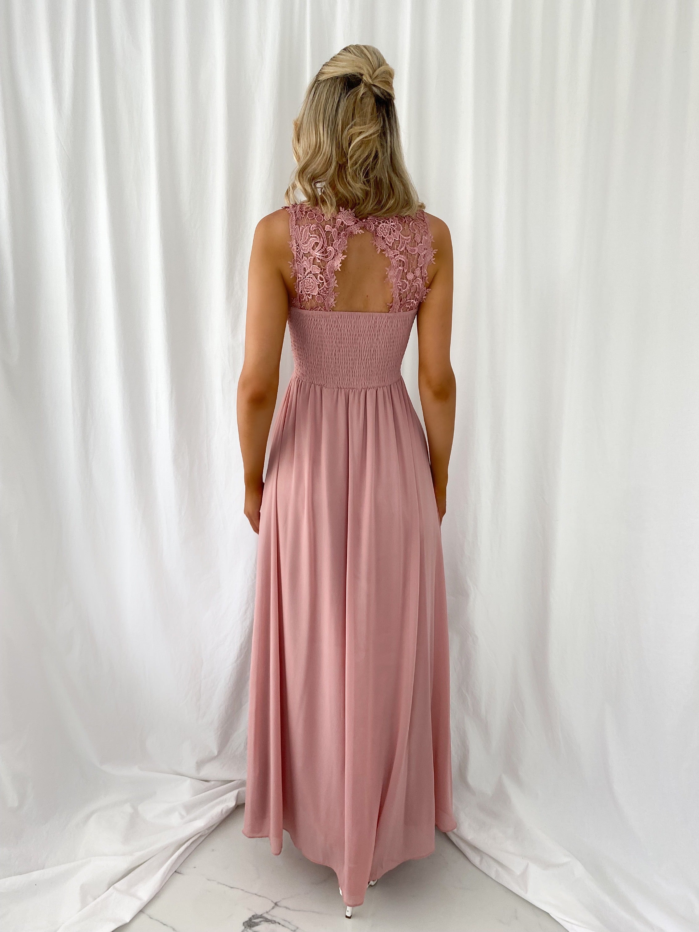 Telma Broderie Top Pleated Maxi Dress – Old Rose