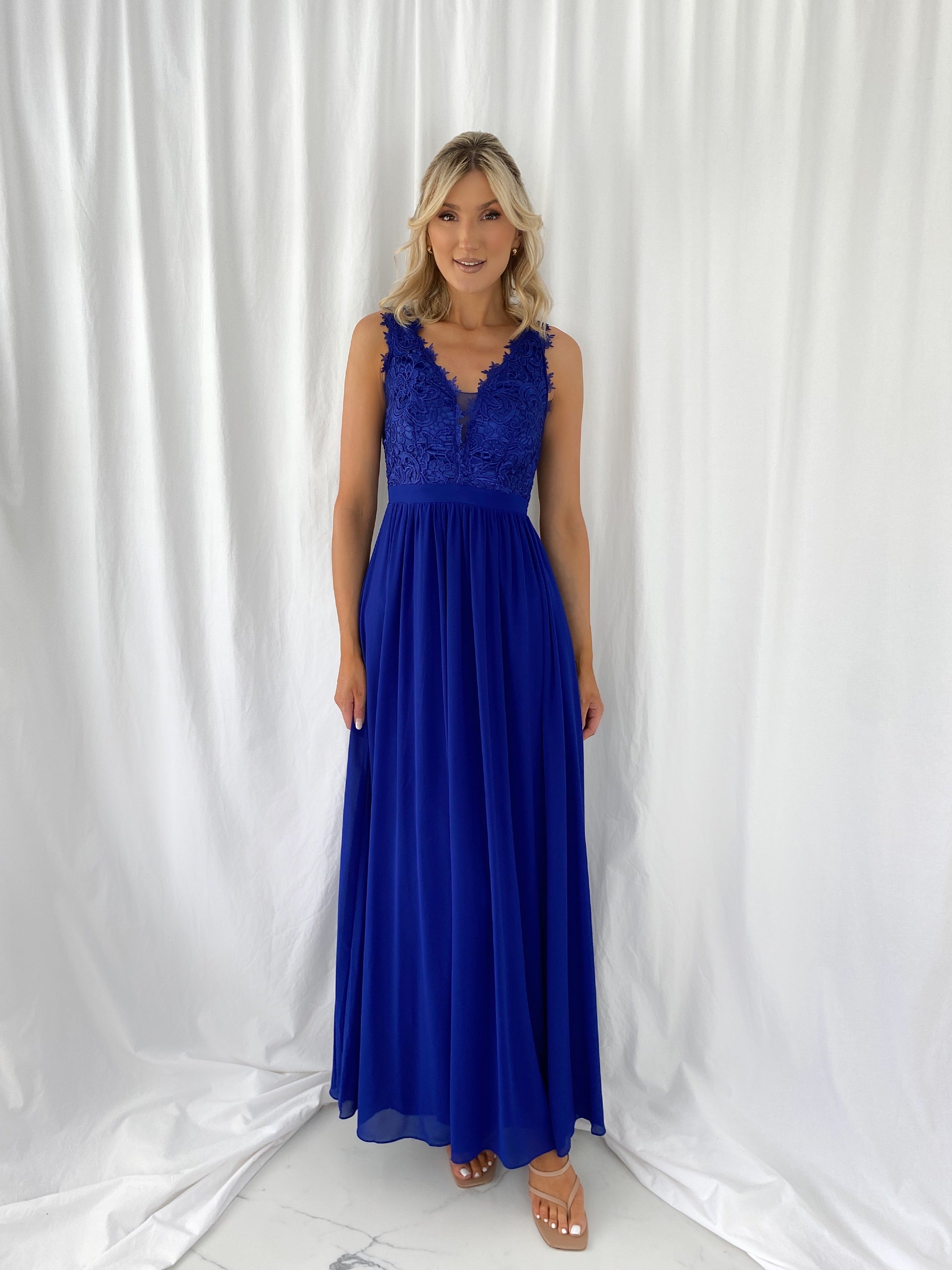 Telma Broderie Top Pleated Maxi Dress – Royal Blue