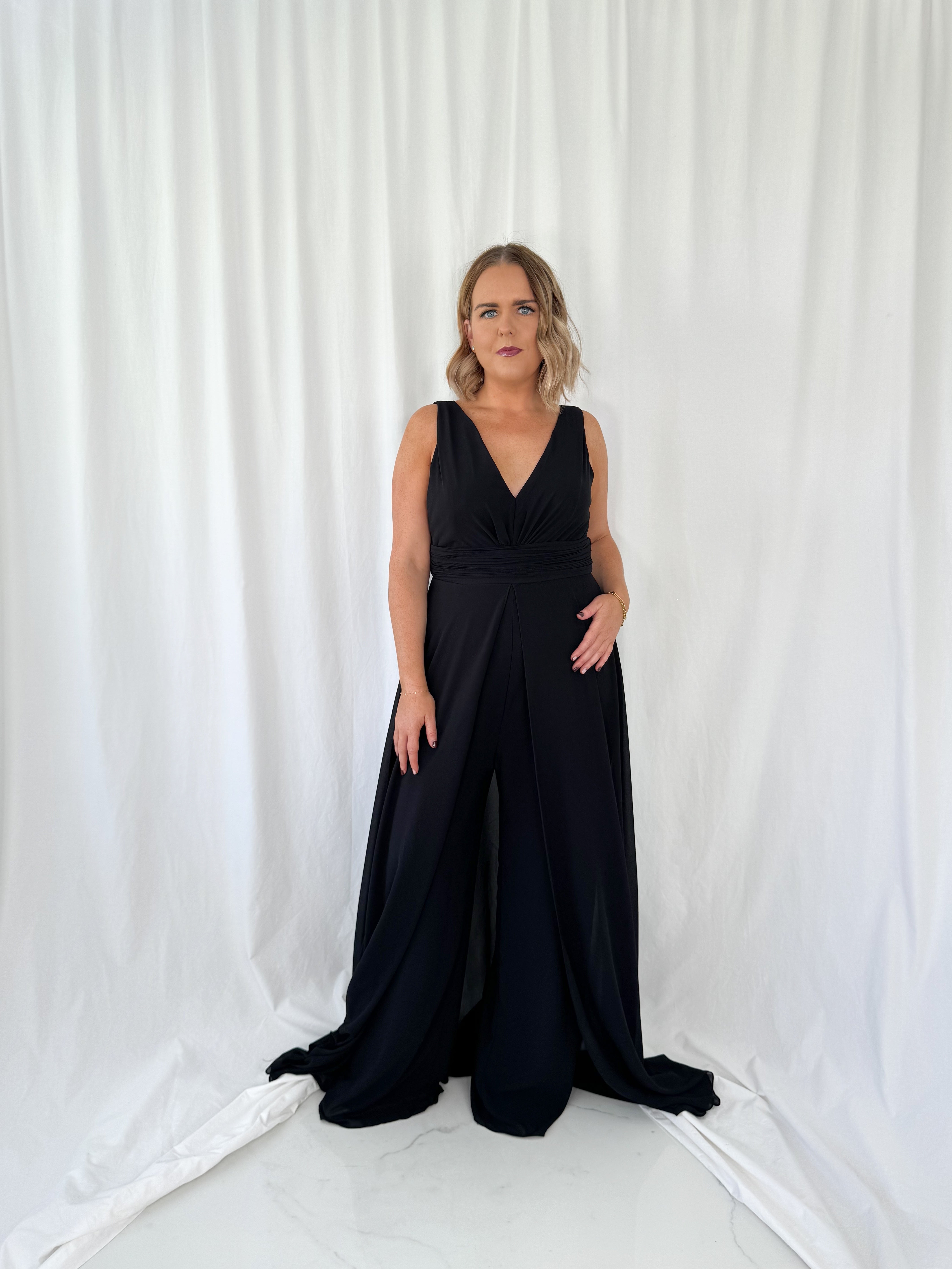 Coraly Bright Pleated Maxi Dress with Draped One Shoulder Top – Navy