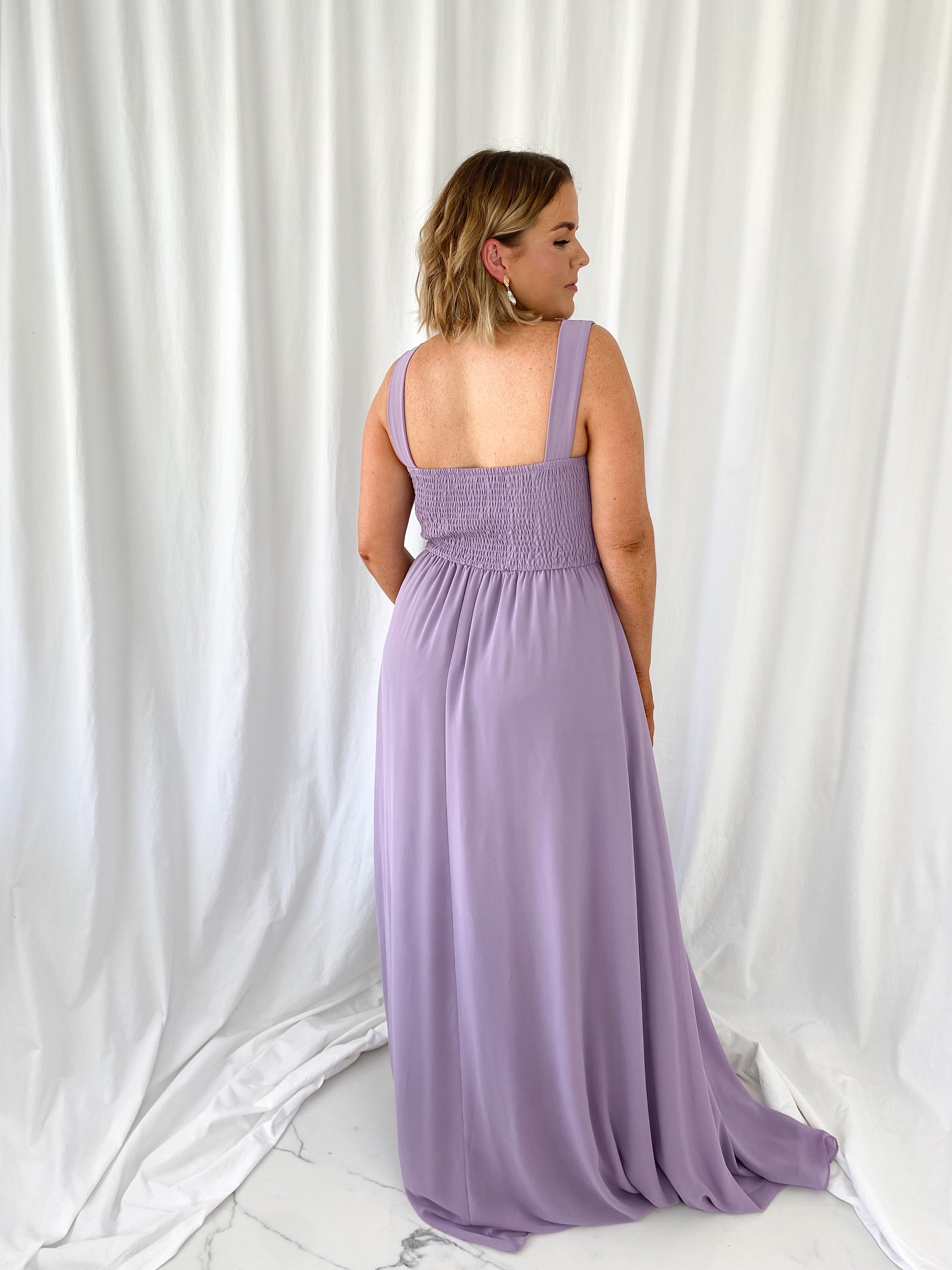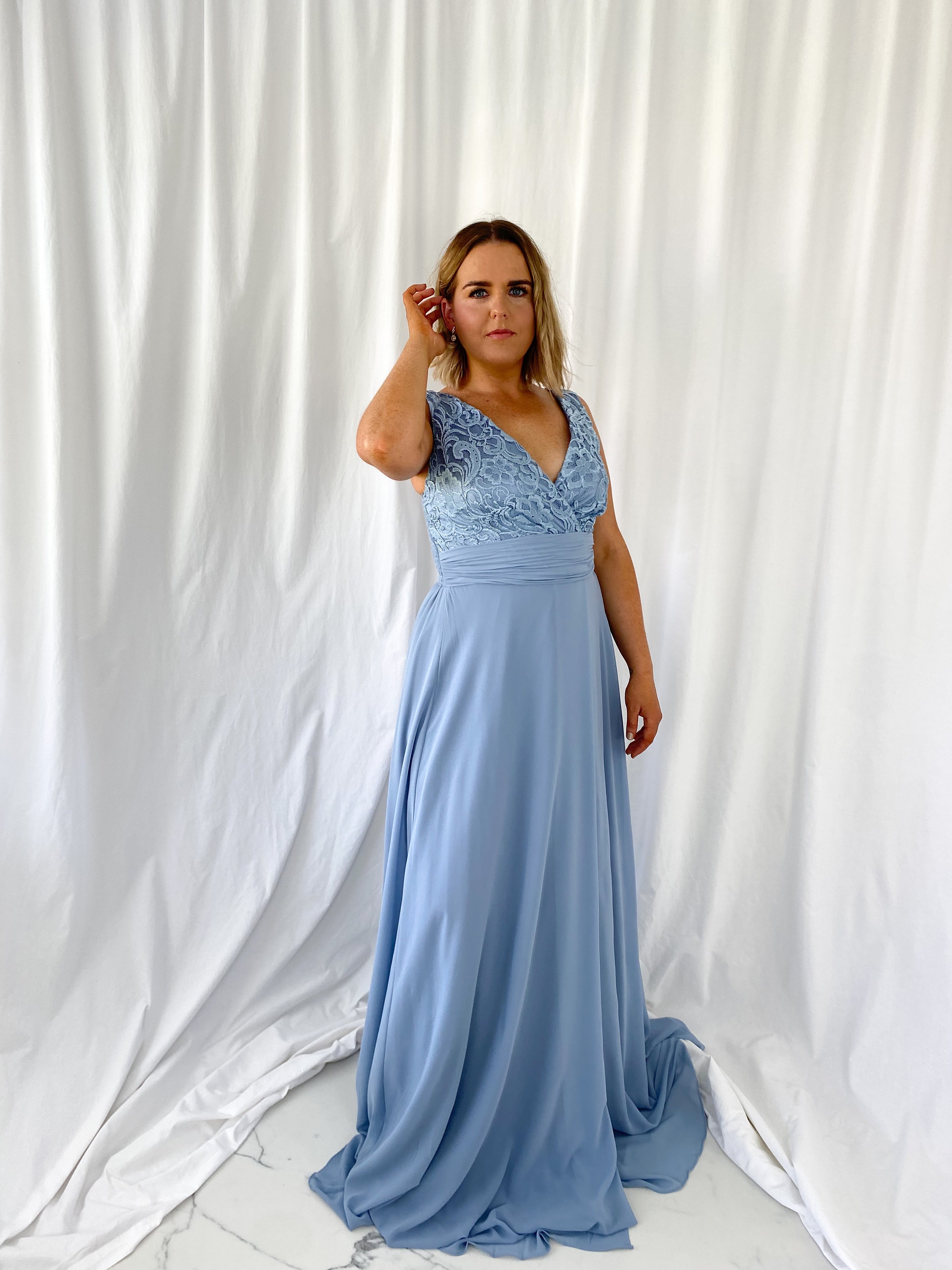 Darlene Maxi Dress with Open Slit – Dusty Blue